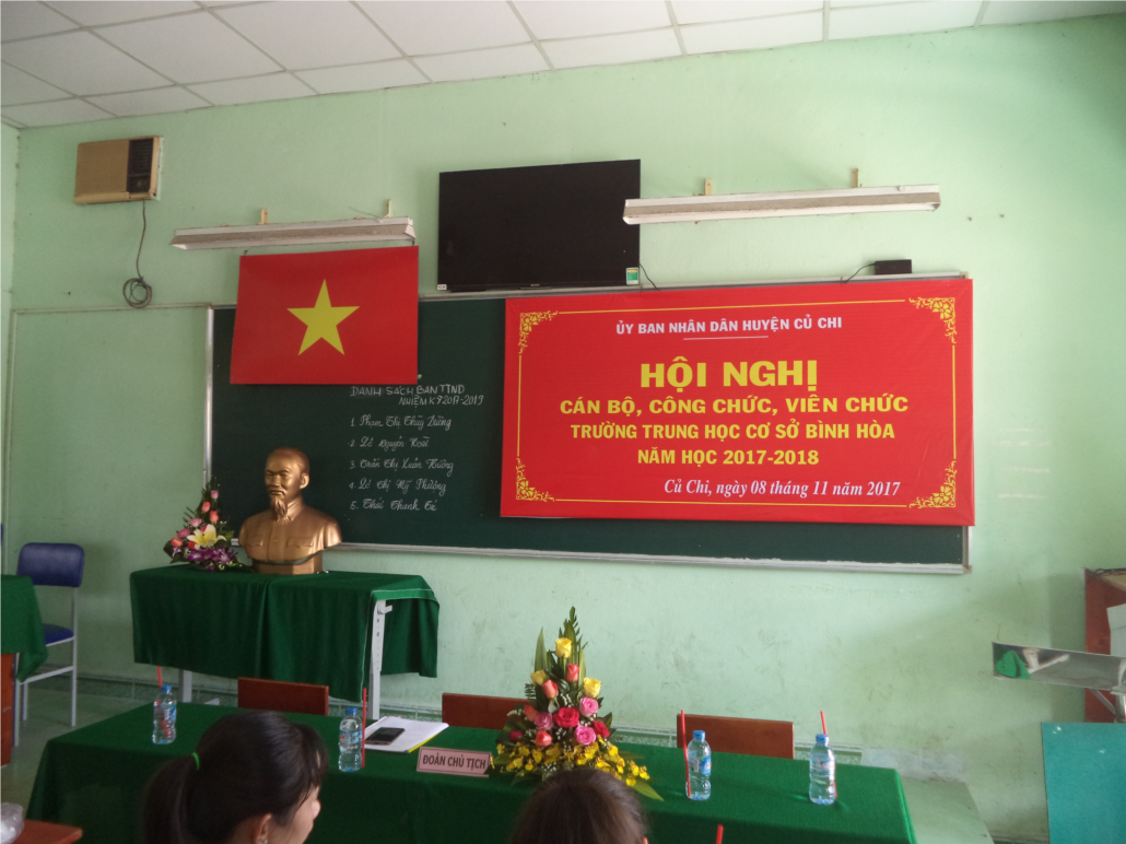 Vào lúc 13g, ngày 08/11/2017 trường THCS Bình Hòa long trọng tổ chức hội nghị CBCC. Trong hội nghị đã triệu tập được được 49/54 thành viên.